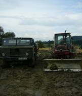 (Unser Traktor und Allrad-Lkw hier bei Erdarbeiten auf dem Grundstück)