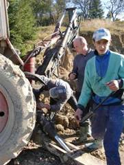 Wie nicht anders zu erwarten war auch 2010 wieder ein Jahr voller Herausforderungen. Wie schon im Bericht über das Jahr 2009 erwähnt war gleich zu Beginn des Jahres geplant, einen guten, gebrauchten Traktor mit Schaufelbaggerarm und Planierschild anzuschaffen, der als Hilfe für die immer wieder nötigen Arbeiten an der Zufahrt, für den Aushub des Fundaments und das Baggern des reichlich benötigten Schotters aus dem Fluss dienen sollte. Das war deshalb besonders wichtig, weil es sich als ausgesprochen schwierig erwiesen hatte immer dann, wenn wir einen Traktor brauchten auch einen aufzutreiben.