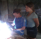Weil wir nun leider doch nur eine recht kleine Gruppe waren und ich ja den beiden Damen nicht alle Arten von Tätigkeiten zumuten konnte, musste ich mich wohl oder übel von meinen Vorstellungen, was während des Bau-Camps erreicht werden könnte, verab-schieden. Um die Zeit möglichst gut zu nützen haben wir abwechselnd mit Holz, Beton und Stahl gearbeitet wobei das Schweißen für alle sicher am interessantesten war, denn diese Arbeit hatten sie bisher alle noch nicht gemacht. Laut Aussage aller habe ich das Verfahren richtig gut erklärt, so dass es bei fast allen auf Anhieb klappte den Schweißapparat richtig zu bedienen.