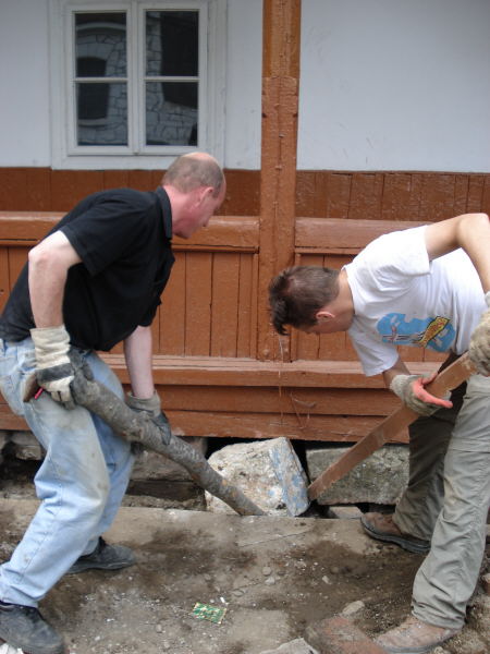 dann wurden grosse natursteinbloecke untergebaut