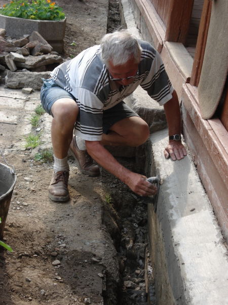 Hans macht noch Feinarbeiten und Spritzputz